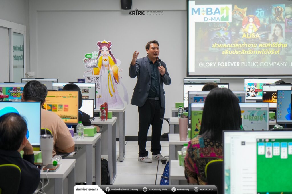 เมื่อวันที่ 25 ตุลาคม 2568 คณะบริหารธุรกิจ หลักสูตรบริหารธุรกิจมหาบัณฑิต สาขาวิชาการตลาดดิจิทัลและนวัตกรรมปัญญาประดิษฐ์ (MBA D-MAI) มหาวิทยาลัยเกริก นำโดย อาจารย์ ดร.สิทธปวีย์ ธนโสตถิกุลนันท์ รองคณบดีฝ่ายวิชาการและวิจัย และผู้อำนวยการหลักสูตรฯ พร้อมด้วยทีมอาจารย์คณะบริหารธุรกิจ ได้ร่วมมือกับบริษัท Alisa AI จัดอบรมหลักสูตรระยะสั้นสุดเข้มข้น ภายใต้หัวข้อ “Shortcut Gen AI For SMEs” เพื่อช่วยให้ผู้ประกอบการยุคใหม่สามารถนำปัญญาประดิษฐ์ (AI) มาปรับใช้และเพิ่มประสิทธิภาพธุรกิจได้อย่างรวดเร็ว